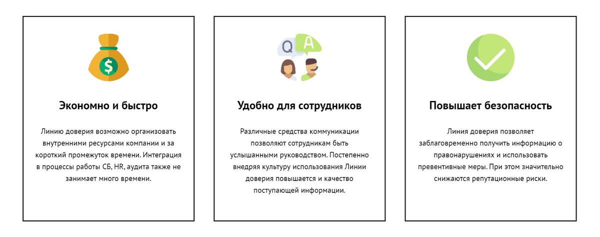 В ходе исследования выяснилось, что в компаниях, где функционировала Линия доверия (или Горячая линия) количество анонимных писем было в разы ниже, чем там где этот инструмент не использовался.