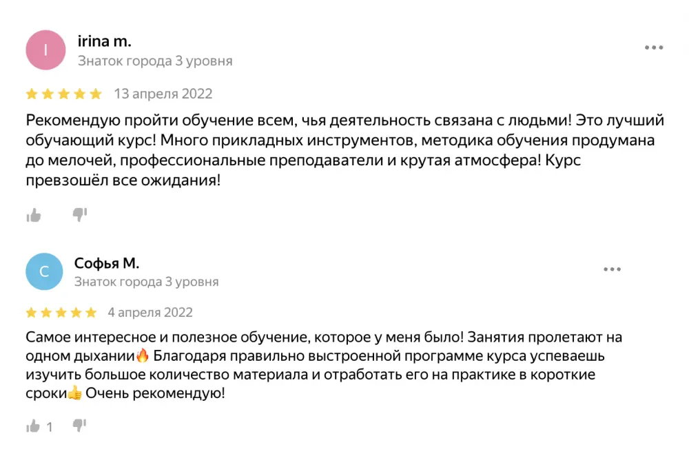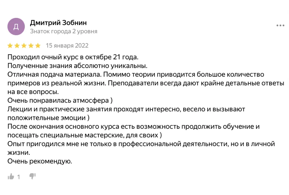 Не уйдете без результата, если, конечно, будете выполнять наши рекомендации. Мы помогаем нашим студентам и консультируем их даже после завершения обучения. Многие слушатели остаются с нами надолго, образуя сообщество профессионалов, с которыми всегда можно обменяться знаниями или посоветоваться.