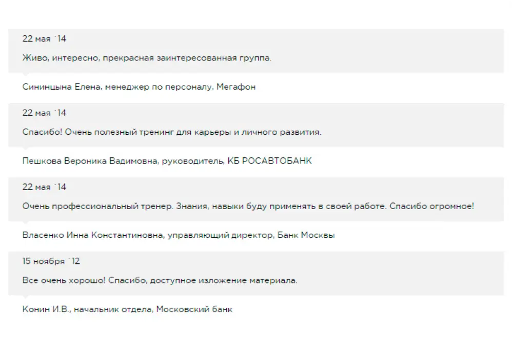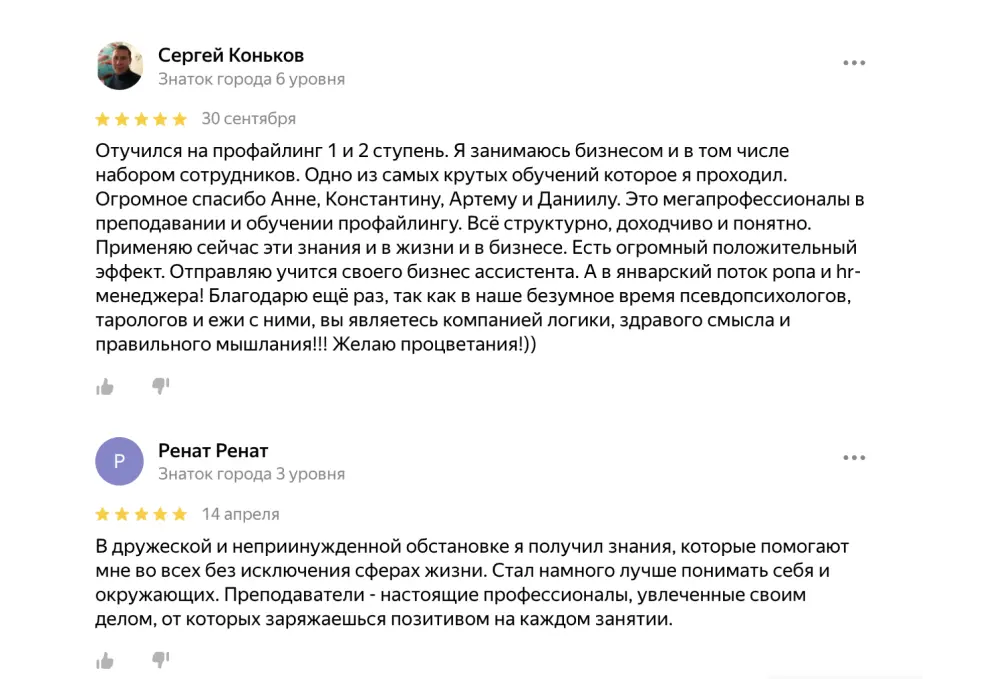 Перестанете ошибаться в людях, будете выбирать надежных, ответственных сотрудников и бизнес-партнеров. Сможете управлять процессом переговоров и проводить квалифицированные собеседования.