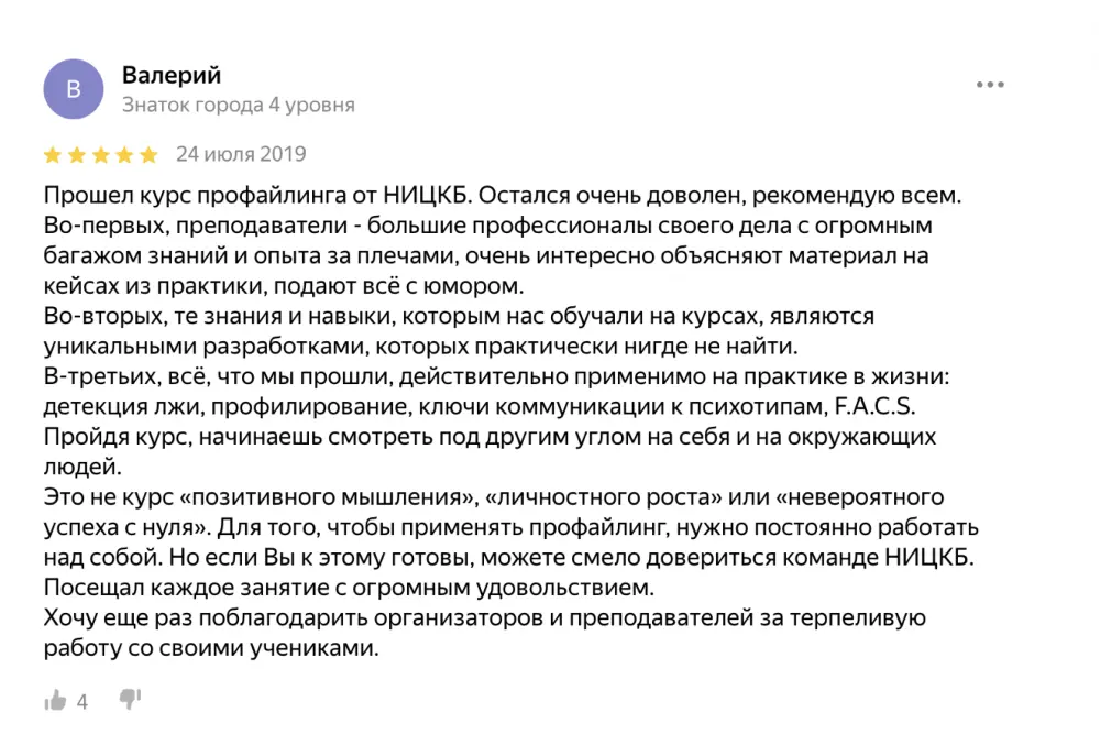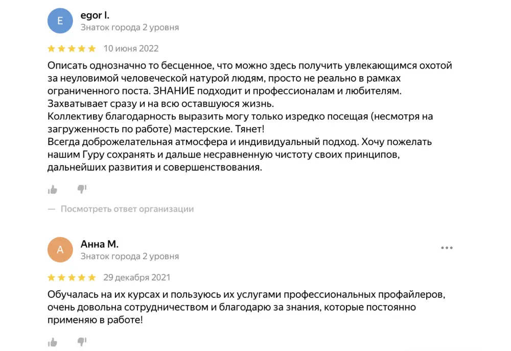 Мы не готовим тренеров, педагогов и консультантов по профайлингу, курс ориентирован на практическое применение.